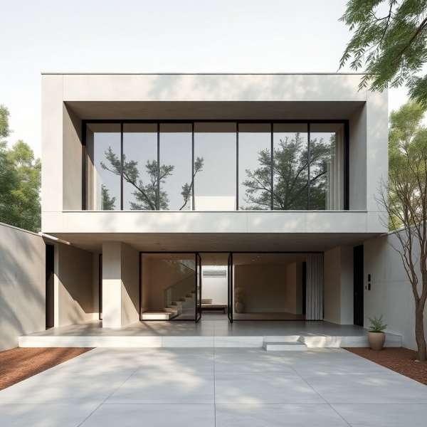 Contemporary architecture-interior design style combines clean lines, minimalism, and functional elements. It utilizes a mix of materials like concrete, glass, and metal, along with neutral color palettes. The focus is on open spaces, natural light, and a harmonious blend of textures and geometric shapes.