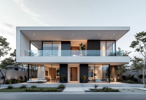 Minimalist architecture-interior design style is characterized by clean lines, simplicity, and a focus on functionality. It often features geometric shapes, smooth textures, and the use of materials such as glass, concrete, and metal. The color palette tends to be neutral and monochromatic, creating a soothing and uncluttered space.